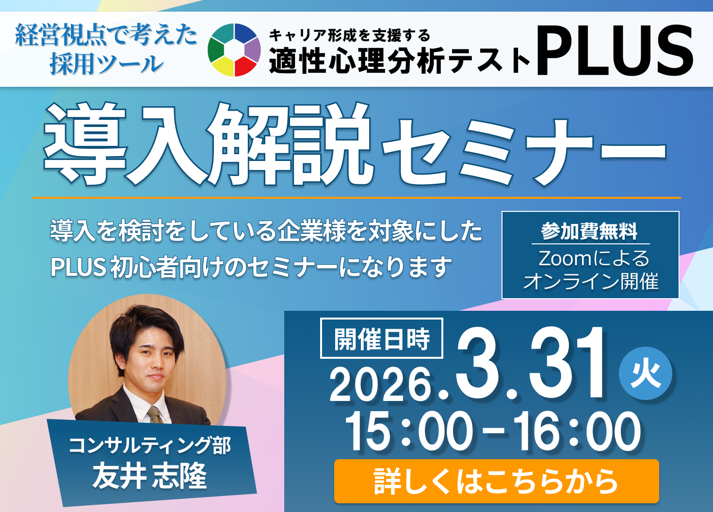 - コンテンツ「適性心理分析テストPLUS® 導入解説セミナー」2026年3月開催のお知らせ