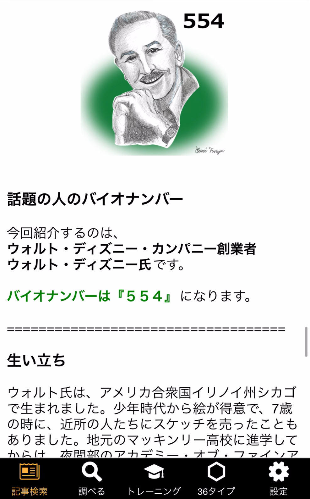 ①著名人の半生を、バイオナンバーと紐づけて紹介しています。バイオナンバーの特徴も表示されます。