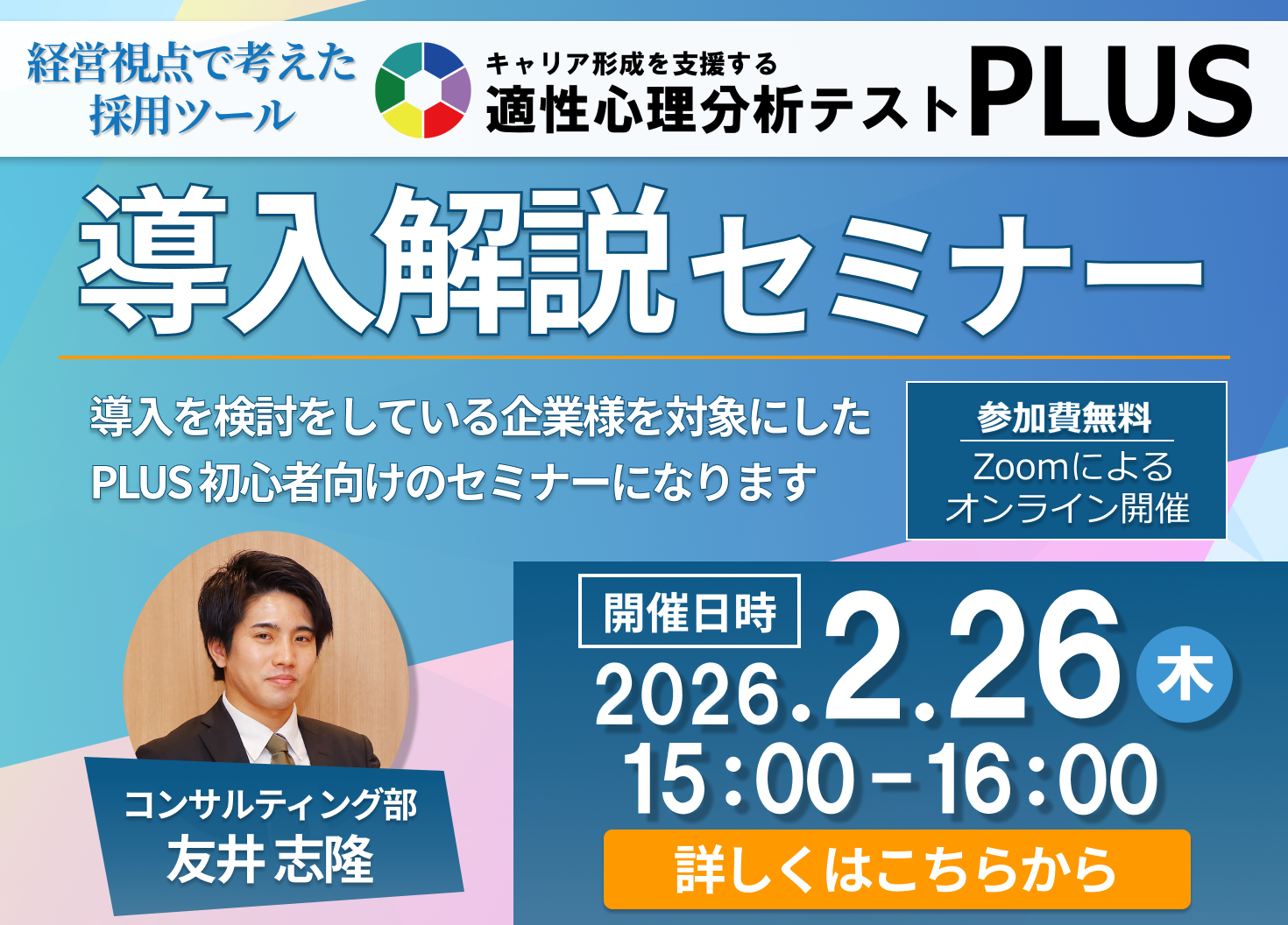 この度、「適性心理分析テストPLUS® 導入解説セミナー」